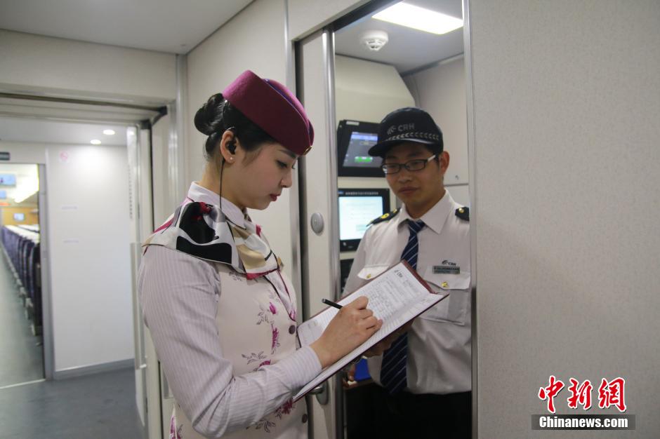 A stewardess checks the equipment.(Photo/Chinanews.com)
