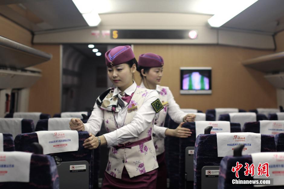 Stewardesses adjust seats.(Photo/Chinanews.com)
