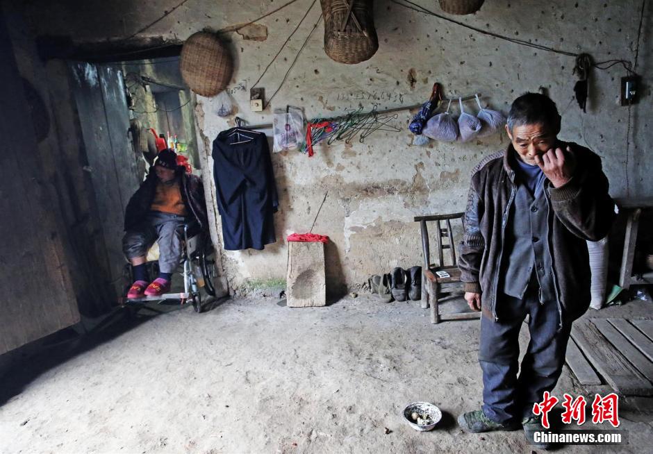 Fu Chengquan, 60, only weighs about 40 kilograms and looks like a 70-year-old man. (CNS/Li Feng)