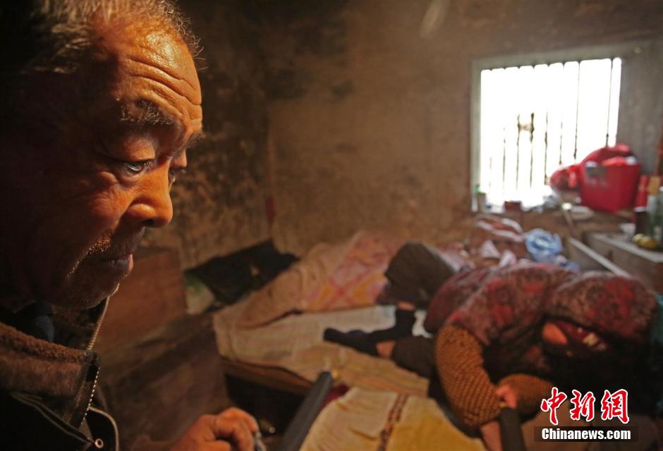 Fu Chengquan takes care of his wife carefully. (CNS/Li Feng)