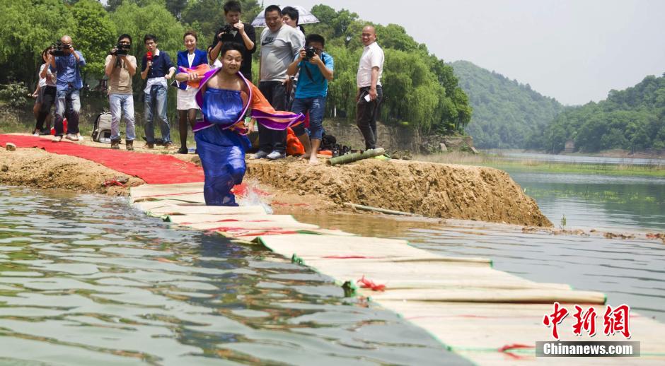 A competitor dressed in ancient costumes runs in the track. (CNS/Yang Huafeng)