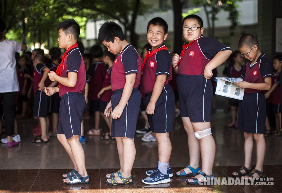 Pupils walk into hall for semester opening ceremony in Shunde, south China's Guangdong province on Sept. 1, 2014. (Photo/Chinadaily.com.cn)