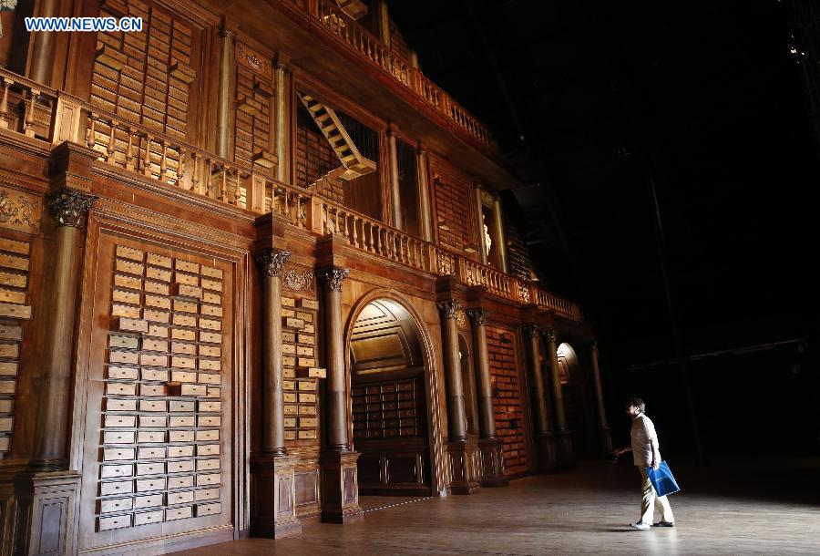 A visitor walks into UN Pavilion at Milan Expo 2015 in Milan, Italy, May 3, 2015. The Milan Expo with the theme "Feeding the planet, Energy for life" will run until October 31 and is expected to attract over 20 million visitors. (Xinhua/Ye Pingfan)