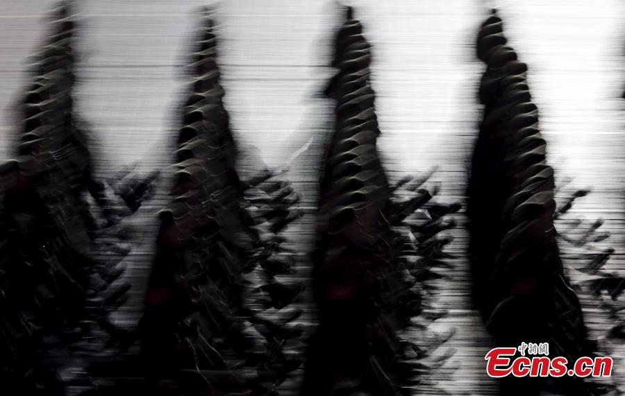 Russian military vehicles including the new Russian T-14 Armata tank make their way to Red Square during a rehearsal for the Victory Day military parade which will take place at Moscow's Red Square on May 9 to celebrate 70 years after the victory in WWII, in Moscow, Russia, May 4, 2015. About 200 pieces of military hardware and 16,500 troops will take part in the parade on Red Square. (Photo provided to China News Service)