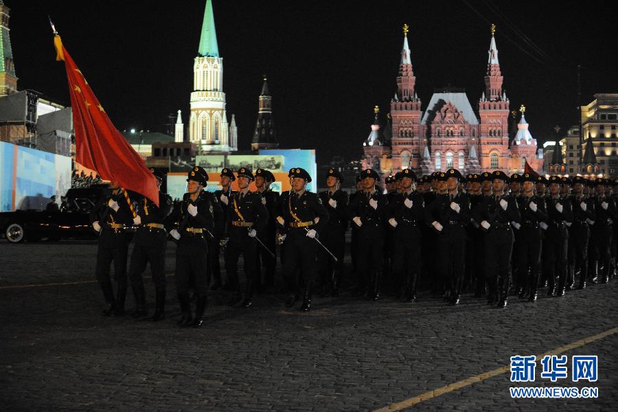 Soldiers of the Chinese People's Liberation Army (PLA) rehearse on Red Square, Moscow on May 4 for the upcoming 2015 Moscow Victory Day Parade. The parade will take place on May 9, 2015 to commemorate the 70th anniversary of the capitulation of Nazi Germany in 1945. (Xinhua/Dai Tianfang)