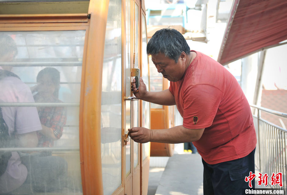 Zhang opens and closes the door of the Ferris wheel every day. (CNS/Li Peiyun)