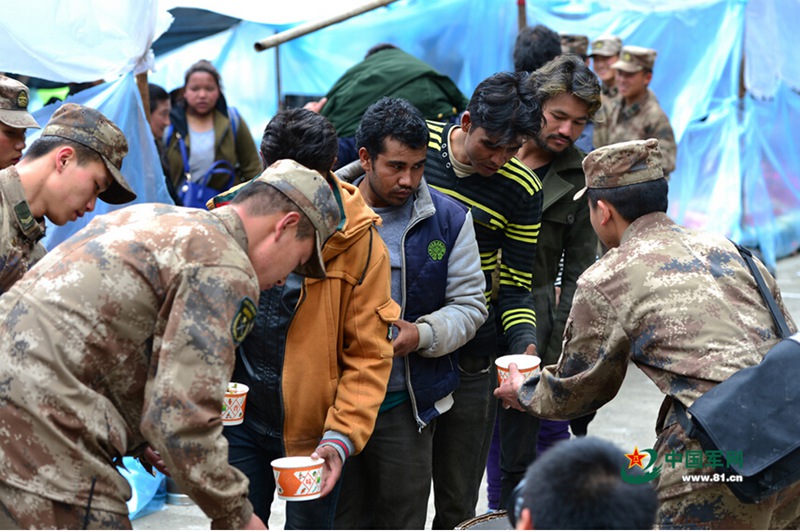 Troops conduct earthquake relief at the foot of Mt. Qomolangma (7)