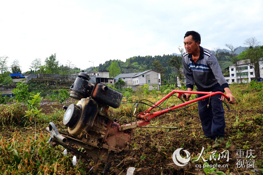 A farmer ploughs the lands in Qijiang District, southwest China's Chongqing Municipality. (People's Daily Online/Huang Qiaomei)