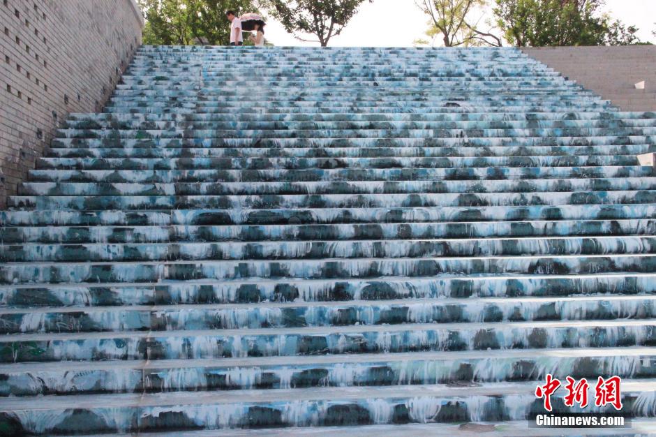 3D street paintings in Xi'an attract many people to take photos with the amazing special effects. Featuring cliff, waterfall, and trap etc., these vivid 3D paintings have become unique scenery on the street of Xi'an. (Chinanews/Fang Qin)