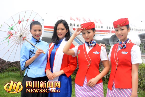 To celebrate the Chinese Youth Day, the students in a college of aeronautics hold a retro party in a plane in Chengdu, southwest China’s Sichuan province on May 4, 2015. Wearing traditional clothes and twist pigtails to be students of the Republican Period (1912-1949), the girls enjoyed this romantic party with the “passengers”. (Photo source: newssc.org) |