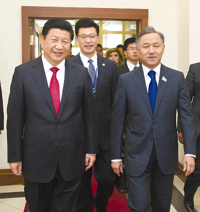 Xi met with Nurlan Nigmatulin, speaker of Kazakh Parliament's Lower House in Astana. Xi said cooperation between the two countries' legislatures is an important part of the China-Kazakhstan comprehensive strategic partnership. He called on the two sides to expand friendly exchanges, share experience, and learn from each other in such fields as governance, democracy and rule of law, so as to support and boost cooperation between China and Kazakhstan. |