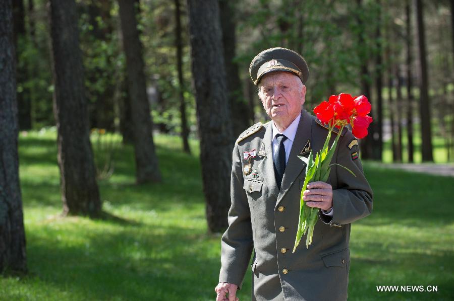 A veteran attends the commemoration marking the 70th anniversary of World War II victory in Europe in Vilnius, Lithuania, on May 8, 2015. (Xinhua/Alfredas Pliadis)