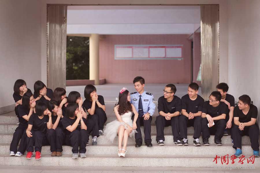Wedding photos of a group of police officers were released recently by the official WeChat of Fuzhou Municipal Bureau of Public Security in southeast China's Fujian Province. The photos, themed "When police uniforms meet wedding gowns", have well shown the police officers' romantic love that is little-known to the public. (Photo/cpd.com.cn) |