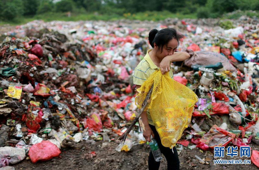 Bai Gefen salvages recyclable materials in a waste yard in Yongfu county, south China's Guangxi Zhuang Autonomous Region. (Photo/Xinhua)