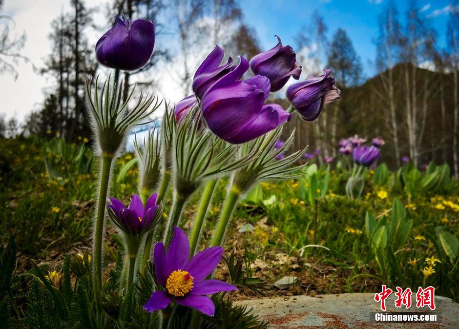 Nurtured by water released by the melting of snow, all kinds of plants on the Altai Mountains are starting to bloom. In the next two month, more kinds of flowers will bloom in Kanas, which is known as the "God's backyard garden." (Chinanews/Lei Dongxiang)