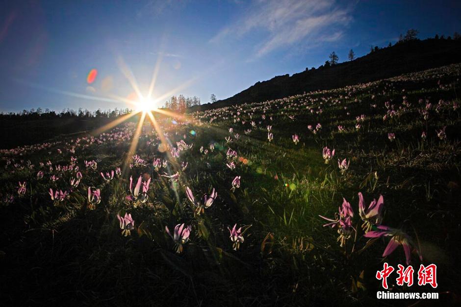 Nurtured by water released by the melting of snow, all kinds of plants on the Altai Mountains are starting to bloom. In the next two month, more kinds of flowers will bloom in Kanas, which is known as the "God's backyard garden." (Chinanews/Lei Dongxiang)