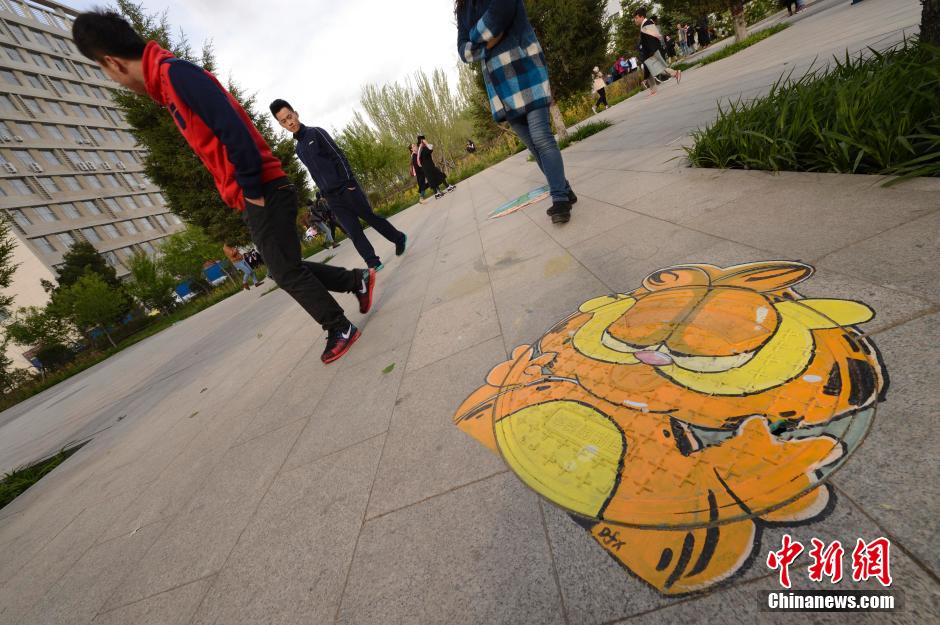 On the campus of Huhhot University for Nationalities, students drew cartoon figures like Baymax, Doraemon, and Garfield on manhole covers and stone pillars, which attracted a lot of attention.