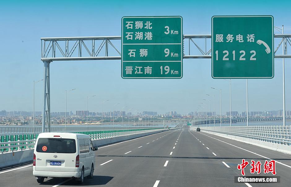 Quanzhou Bay Bridge, 26.7 kilometers' long, ranking No. 6 in China, is opened to traffic on May 12, 2015. The construction started in January 2010 and cost 6.92 billion yuan. The bridge will contribute to the construction of the 21st Century Maritime Silk Road. (CNS/Zhang Bin)