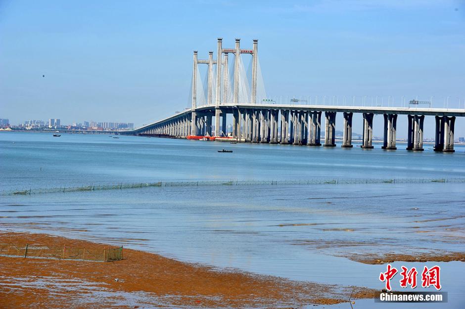 Quanzhou Bay Bridge, 26.7 kilometers' long, ranking No. 6 in China, is opened to traffic on May 12, 2015. The construction started in January 2010 and cost 6.92 billion yuan. The bridge will contribute to the construction of the 21st Century Maritime Silk Road. (CNS/Zhang Bin)