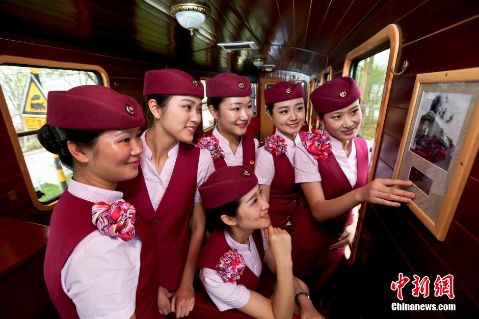 High speed rail stewardesses visit the oldest train station in Nanchang. (Chinanews/Zhang Xuedong)