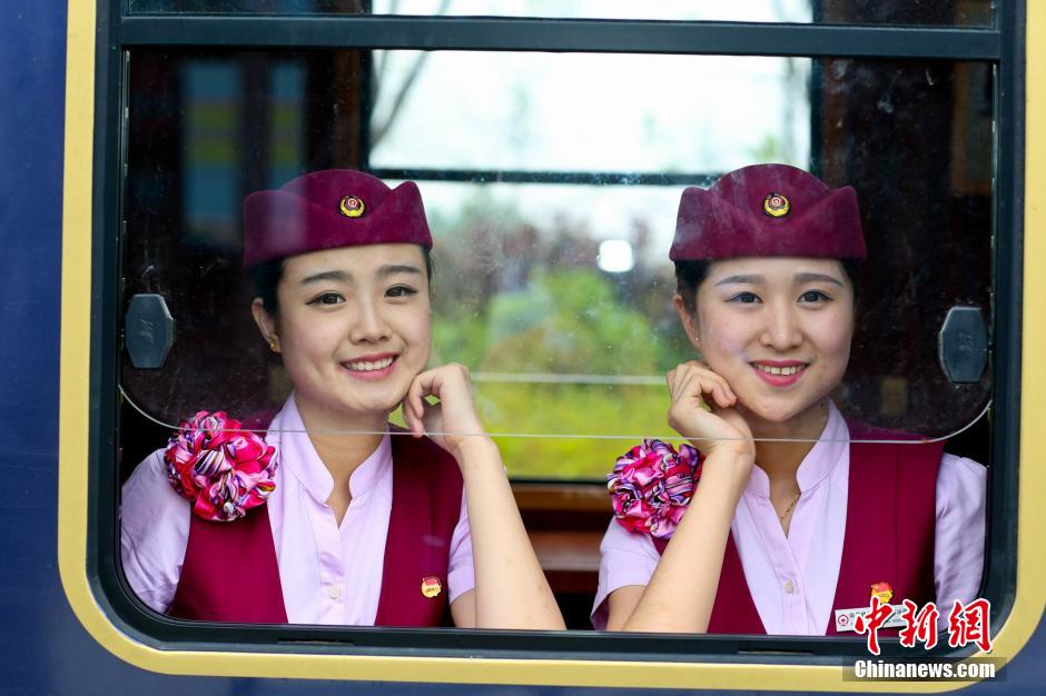 High speed rail stewardesses visit the oldest train station in Nanchang. (Chinanews/Zhang Xuedong)