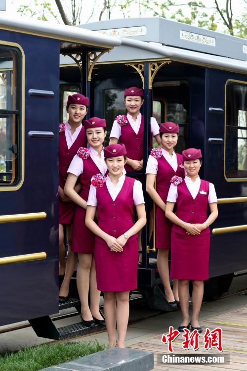 High speed rail stewardesses visit the oldest train station in Nanchang. (Chinanews/Zhang Xuedong)