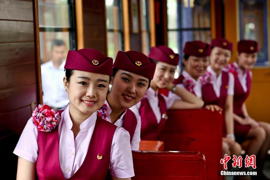 High speed rail stewardesses visit the oldest train station in Nanchang. (Chinanews/Zhang Xuedong)