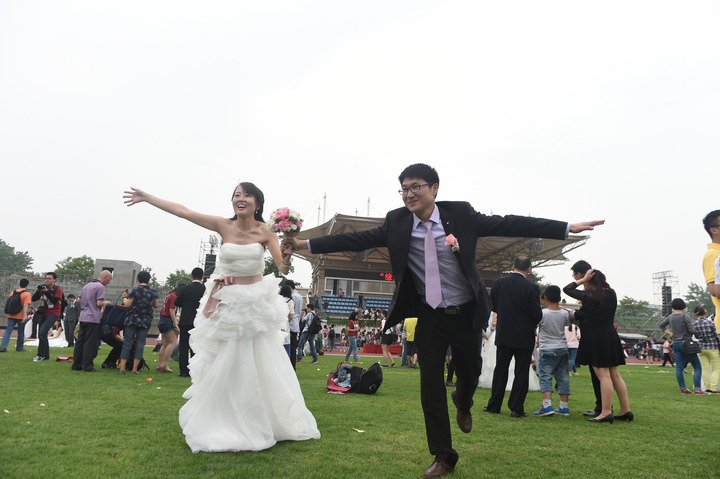 A group wedding for 360 couples is held in Zhejiang University, east China's Zhejiang province, May 10, 2015. Last Sunday was also the 118th founding anniversary of Zhejiang University. Family members, teachers and students witnessed the happiness of the 360 couples who have graduated from the university. (Photo/zjol.com.cn)