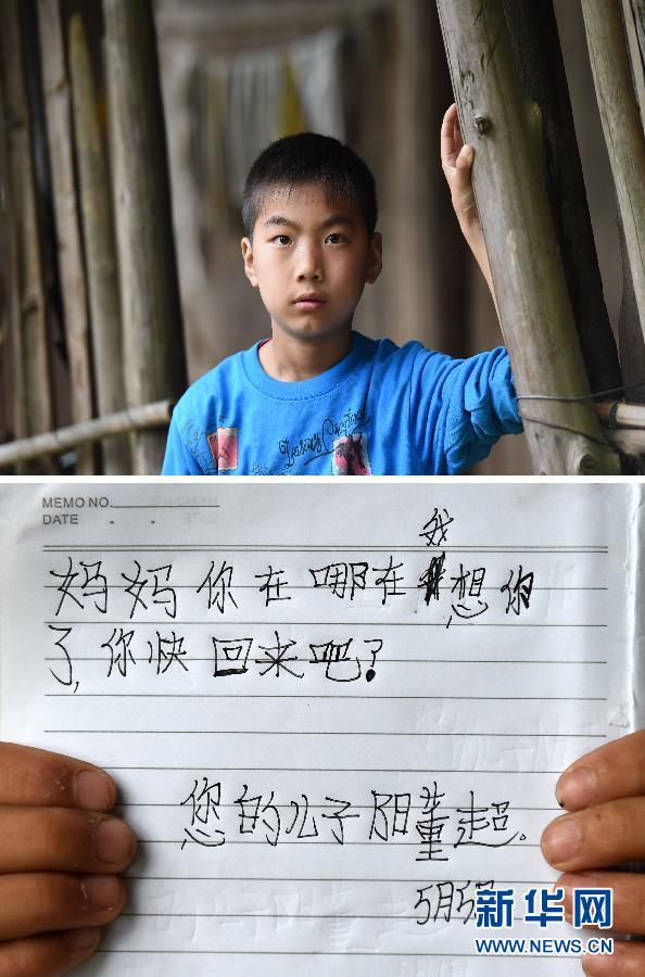 Yang Dongchao wrote to his mother: " Mother, where are you? I miss you so much and I wish you would come back soon!"