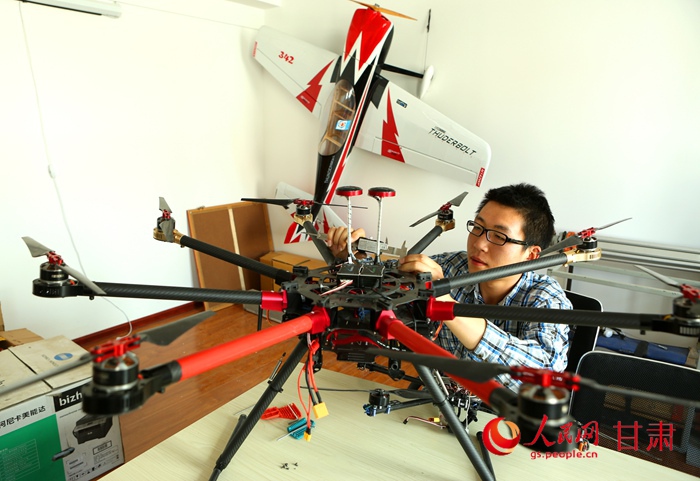Yang repairs an UAV on May 11, 2015. (People’s Daily Online/Mu Jian)