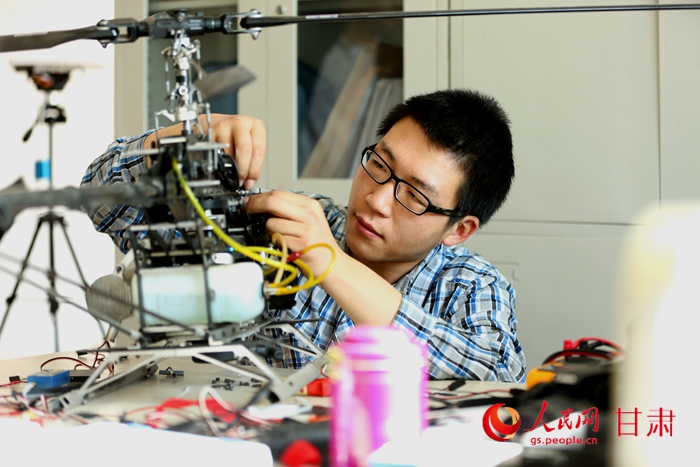 Yang repairs an UAV on May 11, 2015. (People’s Daily Online/Mu Jian)