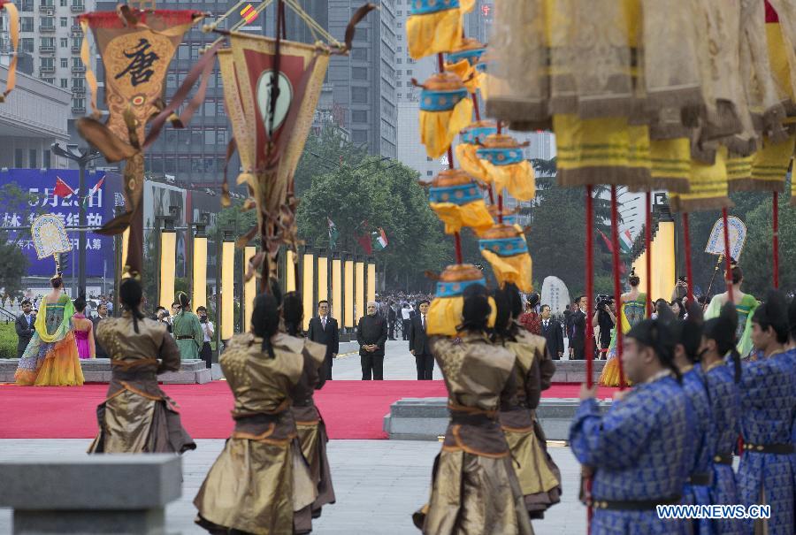 A welcoming ceremony is held for Indian Prime Minister Narendra Modi in Xi'an, capital city of northwest China's Shaanxi Province, May 14, 2015. (Xinhua/Huang Jingwen)