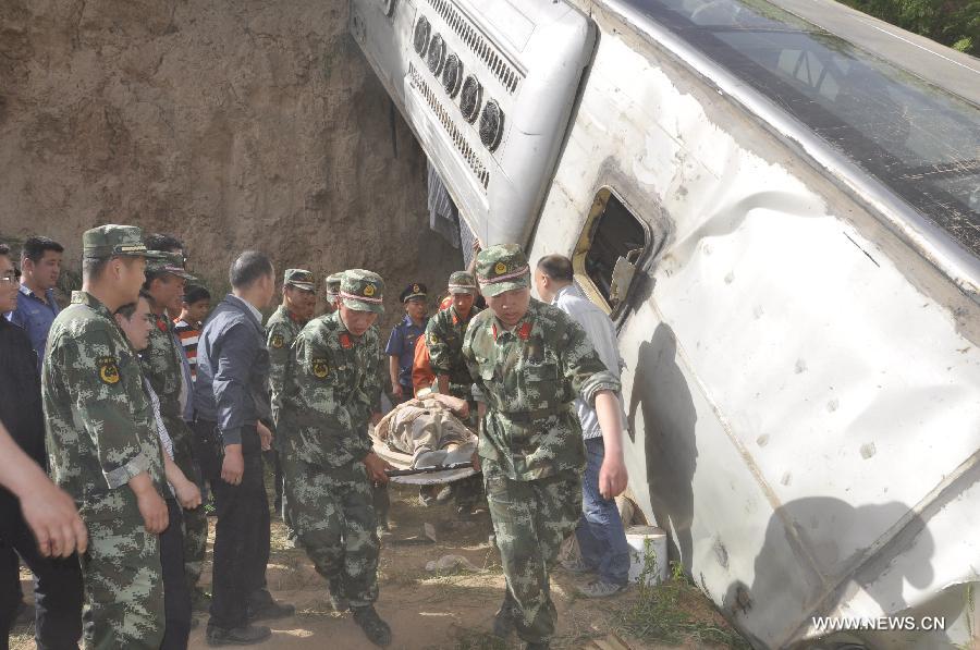Death toll rises to 35 after bus plunges into NW China valley (5)
