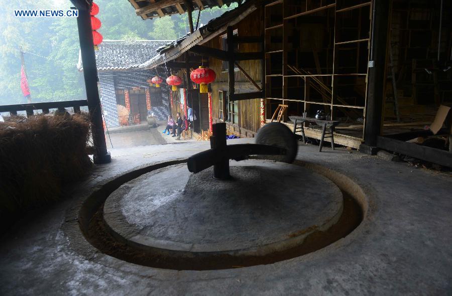 Photo taken on May 17, 2015 shows a stream in Yangmei ancient village of Laifeng County, central China's Hubei Province. The ancient village, with a history of hundreds of years, was named after its rich production of waxberries. There are 34 waxberry trees aged over 300 years, and 108 others aged over 100 years. The village has now developed into a scenic spot for traditional customs and folk culture, attracting tourists all around the nation. (Xinhua/Song Wen)