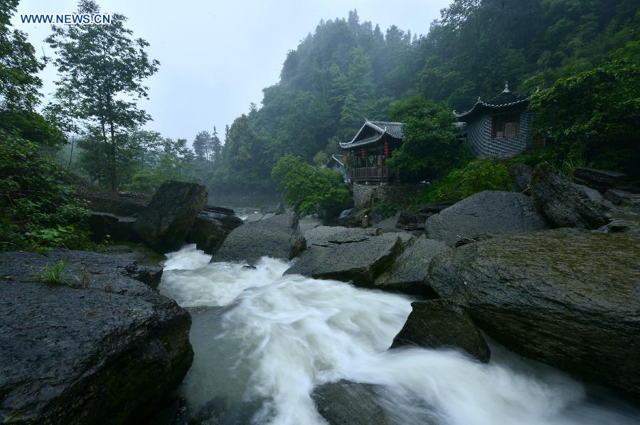 Photo taken on May 17, 2015 shows a stream in Yangmei ancient village of Laifeng County, central China's Hubei Province. The ancient village, with a history of hundreds of years, was named after its rich production of waxberries. There are 34 waxberry trees aged over 300 years, and 108 others aged over 100 years. The village has now developed into a scenic spot for traditional customs and folk culture, attracting tourists all around the nation. (Xinhua/Song Wen)