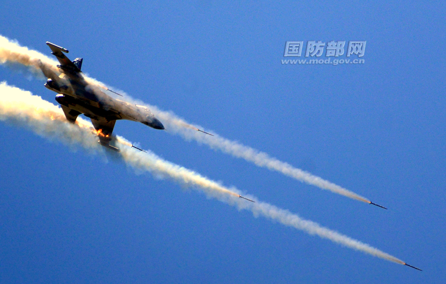 In this photo taken on May 14, a regiment of the air force under Lanzhou Military Area Command of People's Liberation Army conducts live-fire drill in an unfamiliar and complicated airspace. Pilots of the J-11 fighters will temper their psychological, tactical level and improve combat capability. (Mod.gov/Photo)