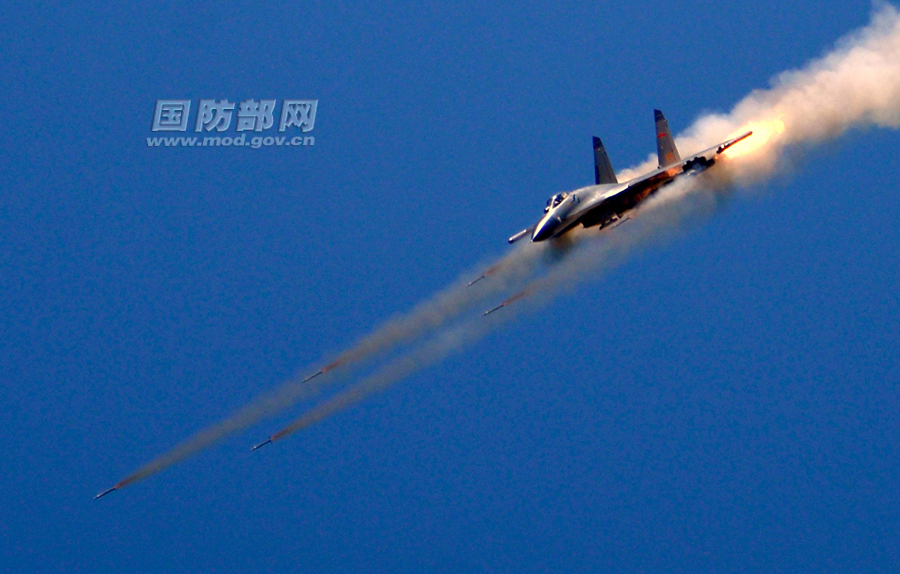 In this photo taken on May 14, a regiment of the air force under Lanzhou Military Area Command of People's Liberation Army conducts live-fire drill in an unfamiliar and complicated airspace. Pilots of the J-11 fighters will temper their psychological, tactical level and improve combat capability. (Mod.gov/Photo)