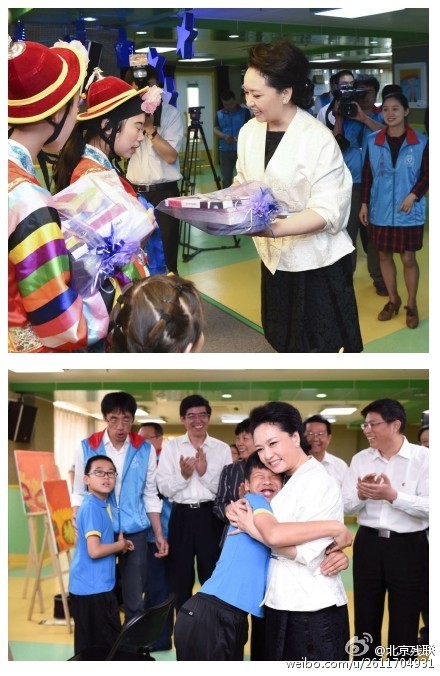 China’s first lady visits autistic children at the Beijing Disabled Persons’ Rehabilitation and Guidance Center. (Photo/ Microblog)