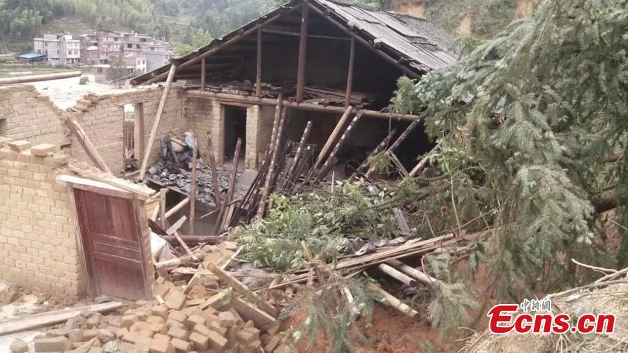 A view of Xiaoyangdong village devastated by flooding and mudslides after heavy rainfalls in Rongshui Miao autonomous county, Southwest China’s Guangxi Zhuang autonomous region, May 18, 2015. The heavy rainfalls from May 14 killed three people and left another three missing in the county. Communication has now been restored. (Photo: China News Service/Jia Xianyi)