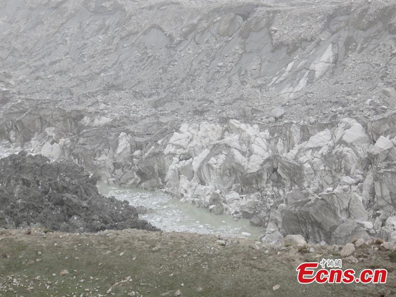 A huge section of the body of the Kongur Tiube glacier collapses in Akto county in the Kizilsu Kirghiz autonomous prefecture, Northwest China’s Xinjiang Uygur autonomous region. Li Zhongqin, the head of CAS Tianshan Mountains Glacier Observation Station, says climate change is at the center of explanations of glacier movement. (Photo provided to China News Service)