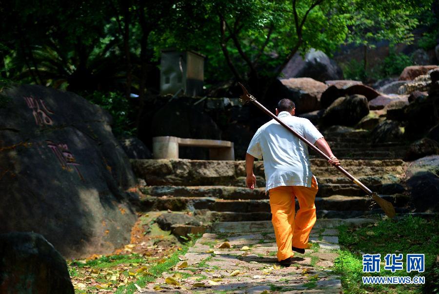 A monk prepares for practice martial art, May 14, 2015. (Xinhua/Wei Peiquan)