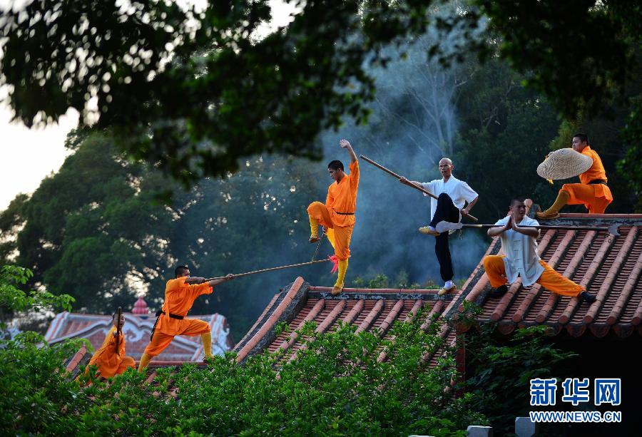 Monks display Southern Shaolin martial arts, May 13, 2015. (Xinhua/Wei Peiquan)