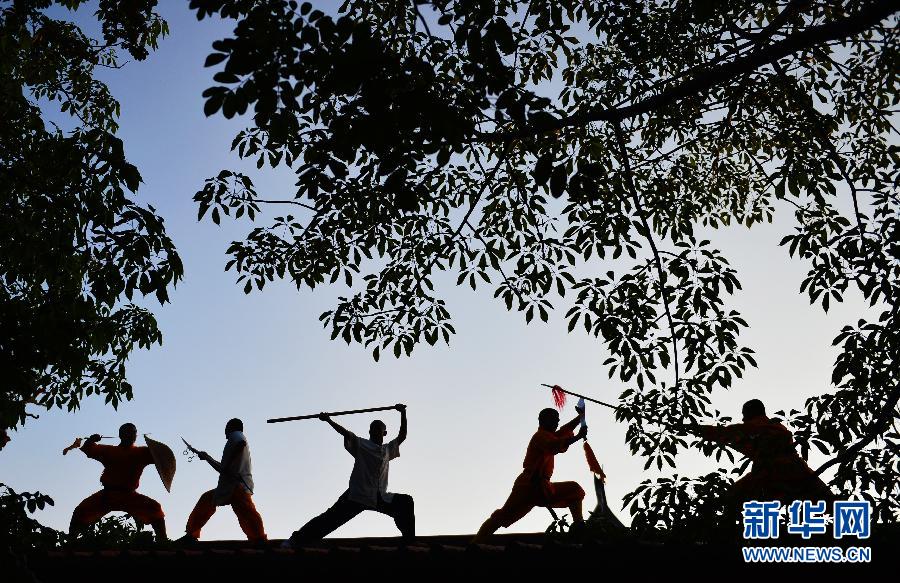Monks display different types of martial arts, May 15, 2015. (Xinhua/Wei Peiquan)