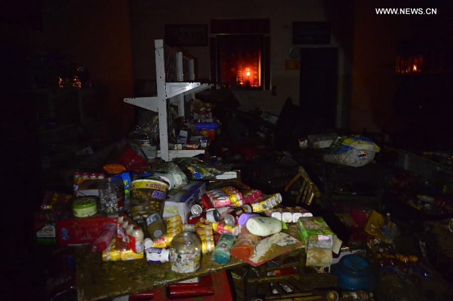 Goods scatter at a store in Hengjiang Town of Shicheng County, east China's Jiangxi Province, May 19, 2015. Seven people have been killed in landslides and house collapses caused by torrential rain in Jiangxi since Monday. The downpour has flooded 13,810 hectares of farmland, and destroyed hundreds of homes, forcing almost 10,000 to leave their homes. (Xinhua/Zhou Mi) |