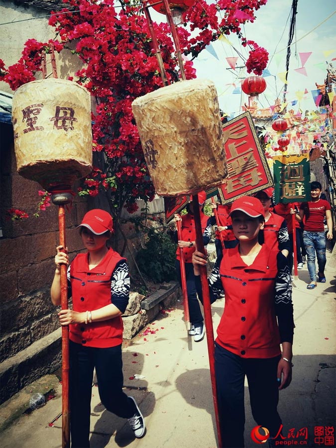 Followers of Mazu participate in the waterway ceremony for the sea goddess to inspect her jurisdiction areas and bless worshippers. (Photo/people.cn)