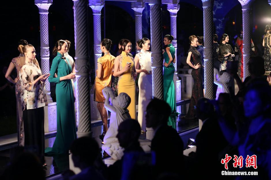 A high-end qipao (cheongsam) show of a customized brand hosted by BASIC Fashion Corp. and Brooklyn Chamber of Commerce opened in Beijing on May 16, 2015. Featuring traditional Chinese culture, 64 different qipaos have brought audience an amazing experience of both ancient Chinese elements as well as modern evolvement. (Chinanews/Da Shuai)