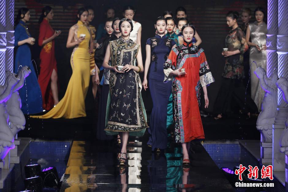 A high-end qipao (cheongsam) show of a customized brand hosted by BASIC Fashion Corp. and Brooklyn Chamber of Commerce opened in Beijing on May 16, 2015. Featuring traditional Chinese culture, 64 different qipaos have brought audience an amazing experience of both ancient Chinese elements as well as modern evolvement. (Chinanews/Da Shuai)