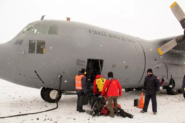 At Punta Arenas, Wang took the Chilean Air Force's Hercules C130 bound for Fildes Peninsula.(People's Daily/Wang Hailin)