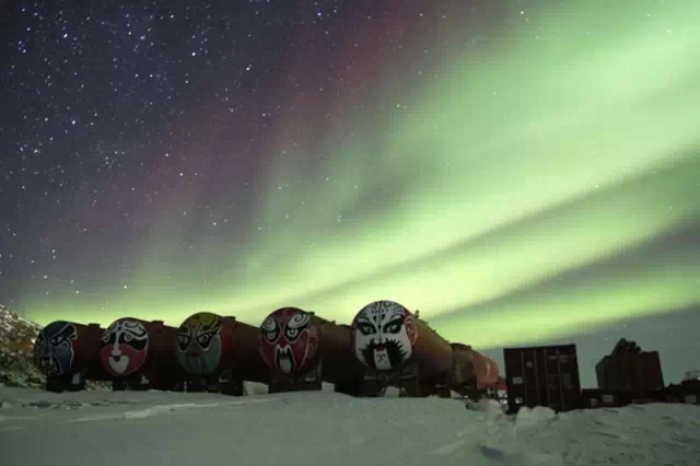Peking Opera masks by the staff on the surface of the oil tanks.(Photo/Wang Gangyi)
