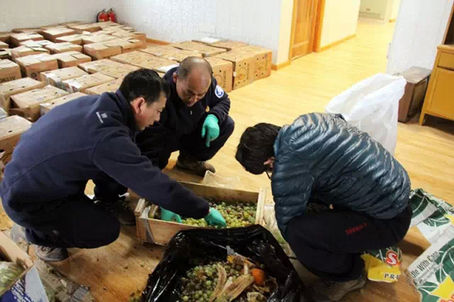 The staff sort fresh vegetables and fruit bought from Chile(People's Daily/Wang Hailin)